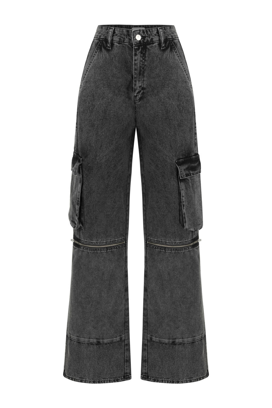 SİYAH METALİK TAŞ BASKILI PANTOLON